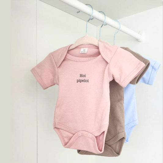 Bij deze body's kan je ervoor kiezen om in de achterflap 'broekschijter' te laten drukken. Deze inside mop wordt pas zichtbaar tijdens het verpamperen of het omkleden van je kindje. Wedden dat het elke keer opnieuw een grappige verrassing is?!
